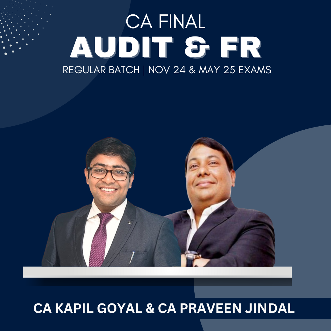 CA Final Audit & FR Regular Batch By CA Kapil Goyal & CA Parveen Jindal. These are beneficial for Nov 24 May 25 and Onward.