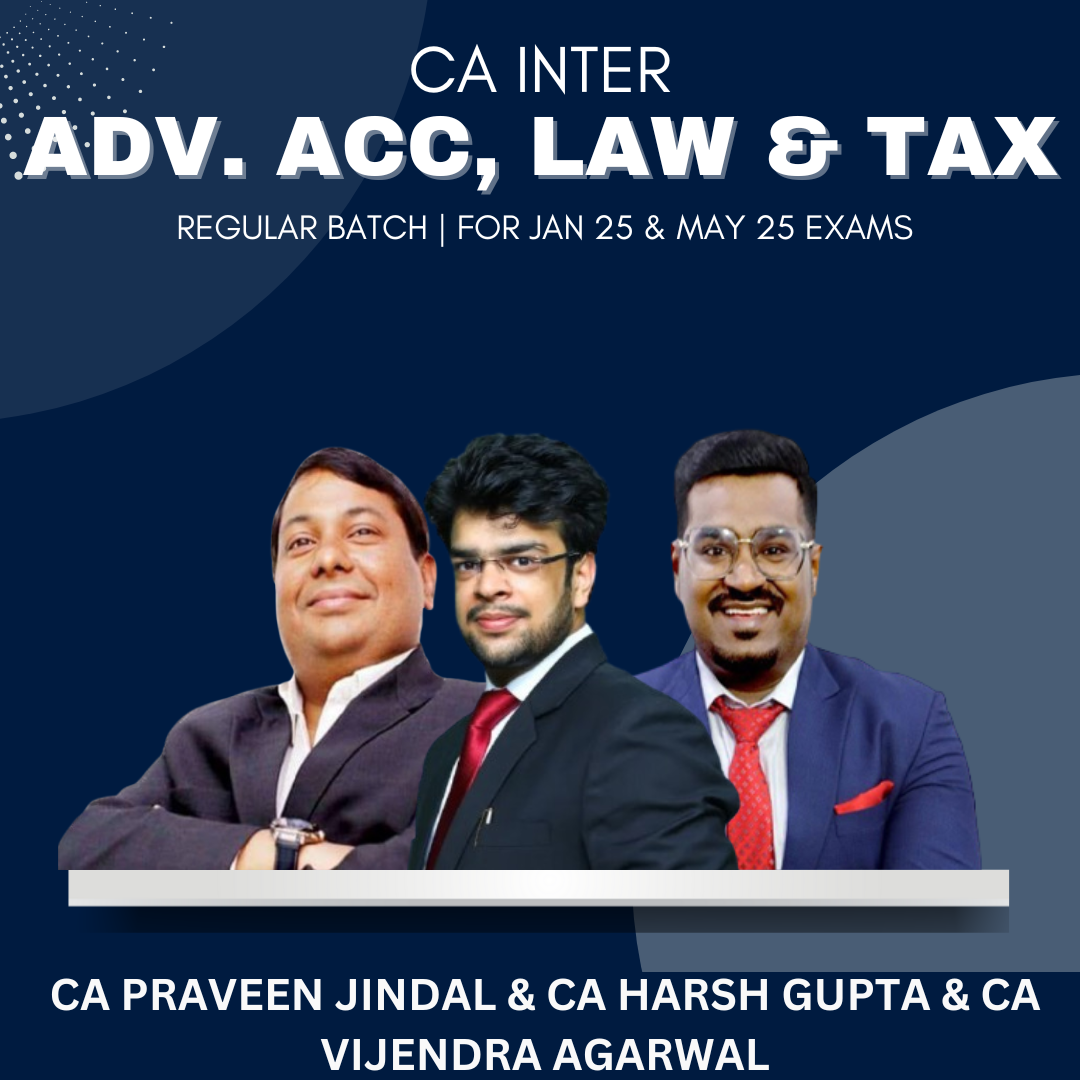CA Inter Advance Accounting, Law & Taxation Regular Combo By CA Parveen Jindal, CA Harsh Gupta & CA Vijender Aggarwal. These are beneficial for Sept 24, Jan Jan 24 & Onwards Exams.