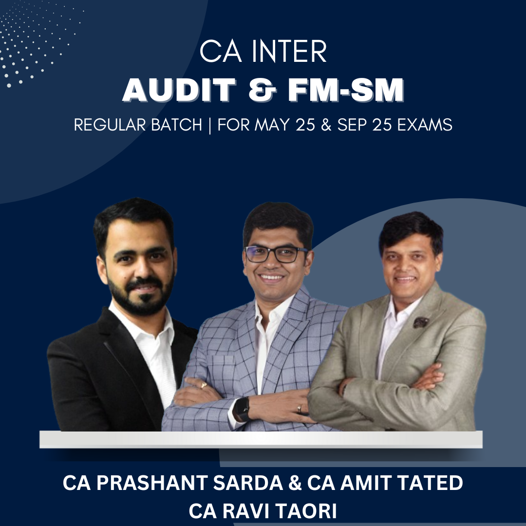 CA Inter Audit, FM & SM Combo Regular Batch by CA Ravi Taori, CA Prashant Sarda & CA Amit Tated. These Lectures are beneficial for May/Sep 25 Exams.
