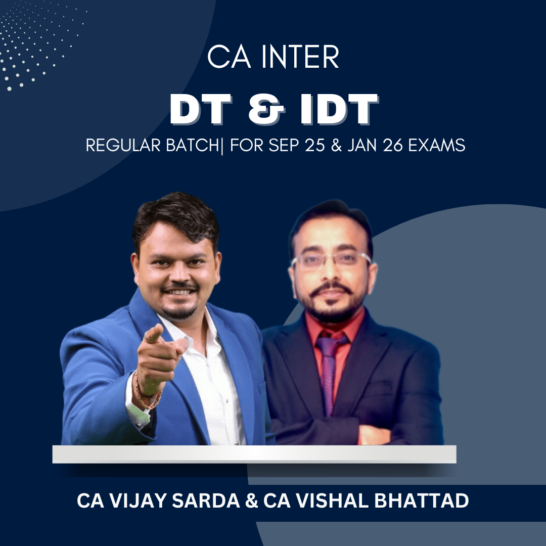 CA Inter DT & GST Regular Batch by CA Vijay Sarda & CA Vishal Bhattad. These Lectures are beneficial for Sep 25 & jan 26 Exams.