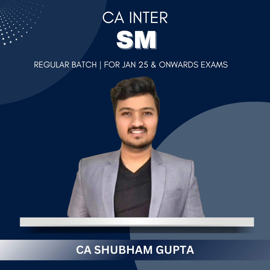 CA Inter SM Regular Batch By CA Shubham Gupta in approx 50 Hrs. These lectures are beneficial for Jan 25 & Onwards. Study materials will be provided with the same.