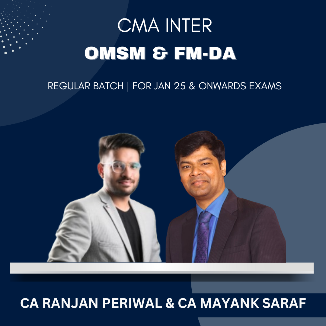 CMA Inter OMSM & FMBDA Regular Batch By CA Ranjan Periwal & CA Mayank Saraf in 230 Hours. These Lectures are beneficial for Dec 24 and onward attempts. Study Materials will be provided with the same.